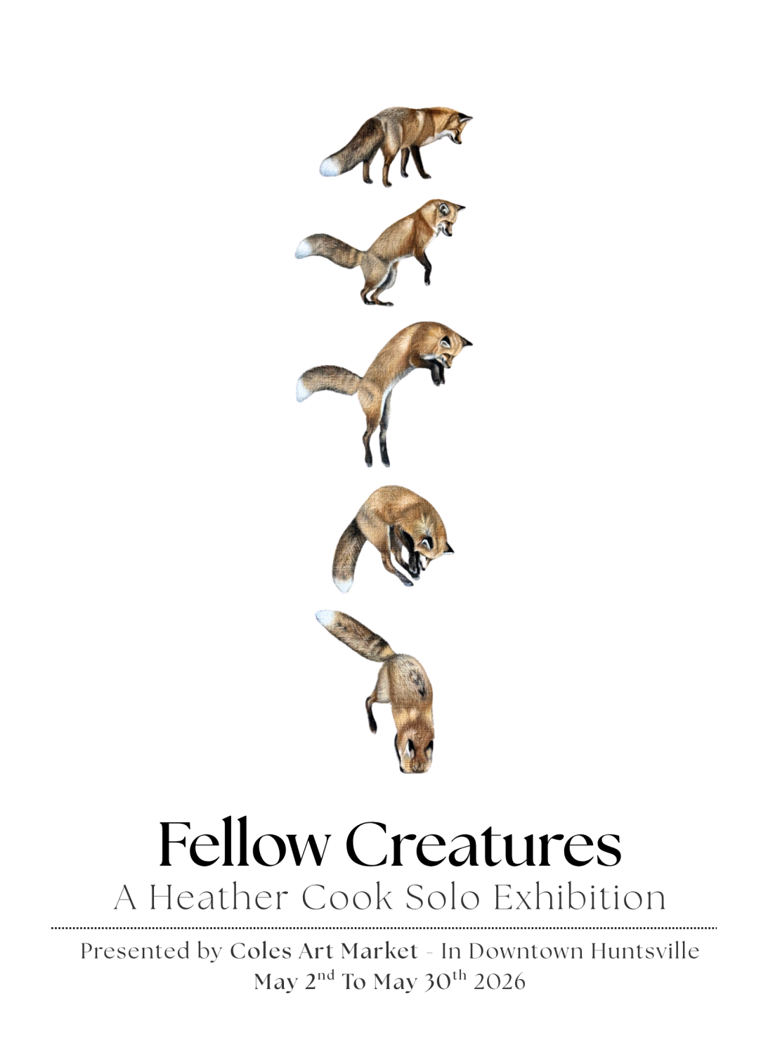 Canadian acrylic painter Heather Cook is exploring our relationship with the wild, through her debut solo art exhibition, ‘Fellow Creatures’. The exhibition will be held at Coles Art Market from May 2nd to May 30th, 2026. When we spend time in nature, among our fellow creatures, we begin to reconnect with something deeper, something instinctual, grounding, and quietly profound. ‘Fellow Creatures’ is a collection of works that explore this connection, inviting us to pause and consider our place within the natural world. The exhibition’s theme is captured by Heather’s own words “I’ve always felt most at home in nature. Ever since I was a little girl, I could usually be found mucking in the dirt, climbing trees, or trying to bring a neighbourhood critter home as a pet. That connection never left me, so when I began painting, it only felt natural that the outdoors would become my subject.” This sentiment echoes throughout her artwork, inviting viewers to explore their own experience and intuitive connections. Heather is a self-taught artist, who has worked endlessly to develop her skills and discover her own voice. “My work is rooted in the belief that nature has a quiet way of teaching us, inviting us to slow down, reflect, and reconnect with ourselves. Each animal I paint carries a sense of presence and meaning, often inspired by Canadian wildlife and the symbolism they hold.” After a beautiful completion of an Artist in Residency program at Chateau d’Orquevaux in France, Heather has been nestling back into her home studio working bring this brand new body of work and inspiration to life. “Fellow Creatures” will be on display at Coles Art Market from May 2nd to May 30th, free admission. An opening reception will be held at Coles Market on May 2nd, from 6pm to 9pm. We will have hors d’oeuvres and beverages as well to top off an incredible evening. There is no admission fee to the event, but with limited space, RSVP is required (see link below or click here to RSVP). Don’t miss this opportunity to experience this body of work in person, and be among the first to take in this incredible solo exhibit. For more information, please email cj@colesart.ca or call 705-789-3205. |