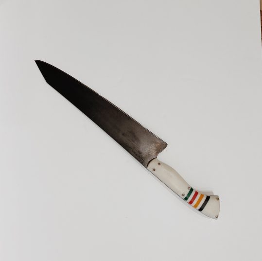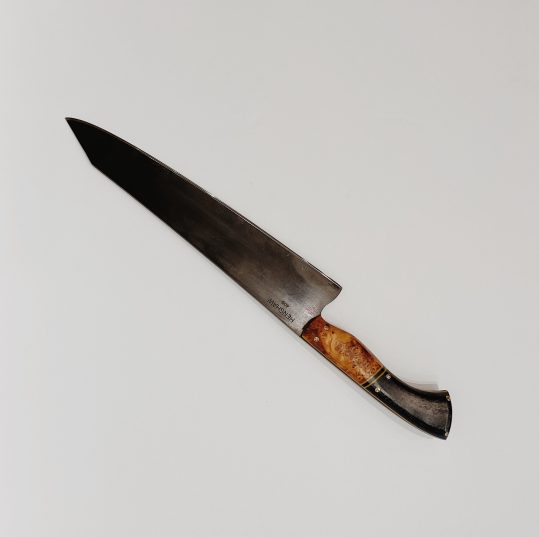 Educated in both Japanese and Western Bladesmithing styles, and combining these techniques in his own unique way, Henshaw builds his knives in the time-proven san mai method, wrapping Damascus steel around a core of high carbon steel to produce a piece that will become part of your family’s legacy for many years to come; an heirloom with a connection to Northern Ontario history.