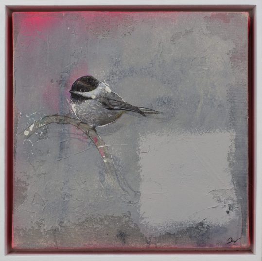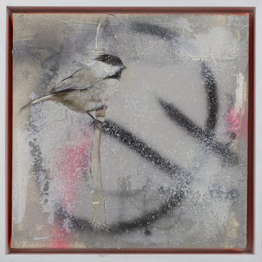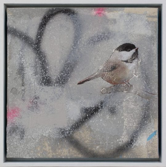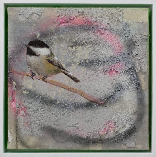 Daniel grew up in the Eastern-townships, Melbournes, Quebec. After high school, he began his lifelong dream of working in the arts. He graduated early from Champlain college with a degree in Fine Arts with a focus on painting. Later, he received his BFA from NSCAD University, in Halifax, Nova Scotia in 2005. He continued his studies by completing a graduate degree in VFX for film and television in Toronto. Daniel pursued his interest in digital media and has since become an active digital artist working on major feature films such as Avengers and groundbreaking television shows like Game of Thrones. He has also held art residencies in Quebec and Ontario, including a recent residency in Algonquin park.Daniel’s paintings create a vocabulary of wildlife in a new dialect of urban industrial aesthetics. His language is a mixed media that includes mosses, dried flowers, sticks, stones and crushed cement juxtaposed with staggeringly beautiful and realistically rendered creatures. Placed on graffitied canvasses, with horizons made from tire tracks, Daniel paints deeply ambivalent depictions of the uneasy coexistence between urban expansion and animal habitat. He continues to find new ways to explore our increasingly false distinctions between natural and urban environments.