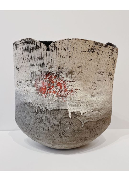 Lesley McInally completed her Bachelor of Design Honours Degree in Ceramics and Printmaking at Dundee University, Scotland. She worked as a full time professional ceramic artist producing both functional and decorative ceramics for galleries throughout the UK. In 2004 she immigrated to Canada where she continued her studio practice in Cookstown, Ontario. Lesley is widely known for her uniquestretched slab and hand built vessels. Incorporating her printmaking skills she also developed a highly tactile surface using coloured slips and underglazes which create a rich depth of surface texture. Lesley McInally’s functional pieces capture landscapes with primitive childlike